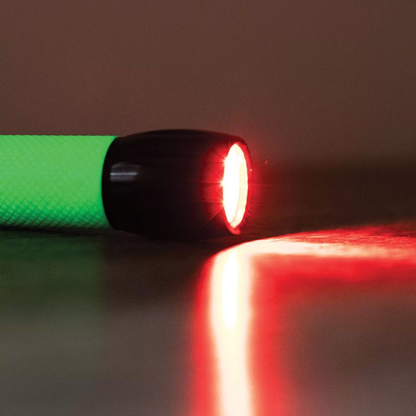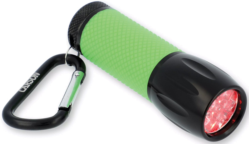 3.75″ overall. (9) Red LEDs. Two brightness levels. Carabiner clip. Glow in the dark synthetic handle. Requires (3) AAA batteries (not included). Clam packed.