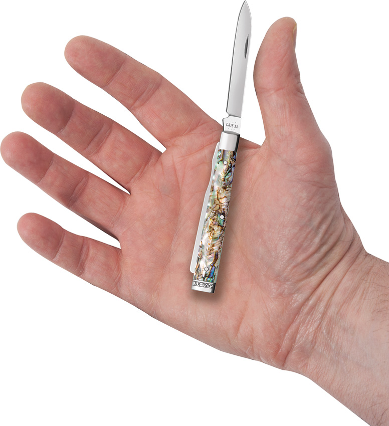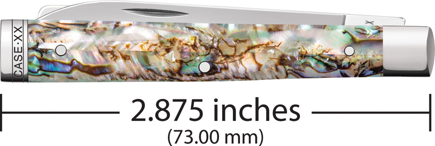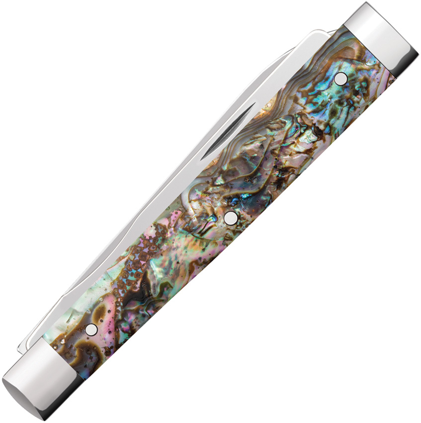 8282SP SS pattern. 2.88″ (7.32cm) closed. Mirror finish stainless spear and spatula blades. Abalone handle. Nickel silver bolster(s). Gift boxed.