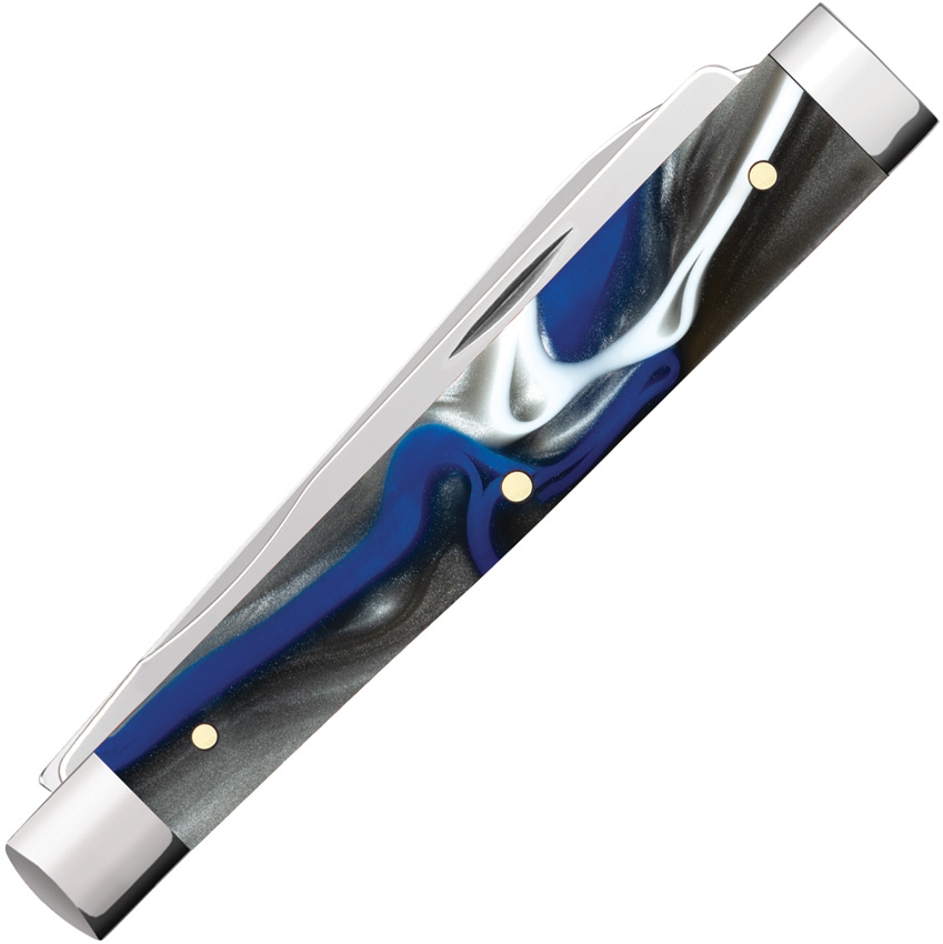 10282SP SS pattern. 2.88″ (7.32cm) closed. Mirror finish stainless spear and spatula blades. Pacific Tides Kirinite handle. Nickel silver bolster(s). Inlay shield. Boxed.