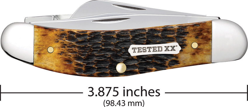 TB6339 CS pattern. 3.88″ (9.86cm) closed. Mirror finish carbon steel clip, sheepsfoot, and spey blades. Burnt Amber jigged bone handle. Nickel silver bolster(s). Inlay shield. Boxed.
