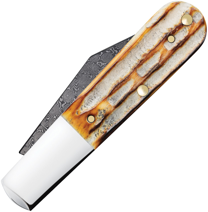 61009 1/2 DAM pattern. 3.38″ (8.59cm) closed. Damascus steel clip blade. Burnt Deep Canyon jigged bone handle. Nickel silver bolster(s). Boxed.