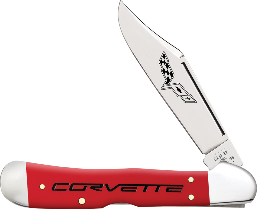 41549L SS pattern. 4.25″ (10.8cm) closed. Mirror finish stainless locking clip blade. Red smooth synthetic handle. Nickel silver bolster(s). Blade etching. Corvette handle embellishment. Boxed.