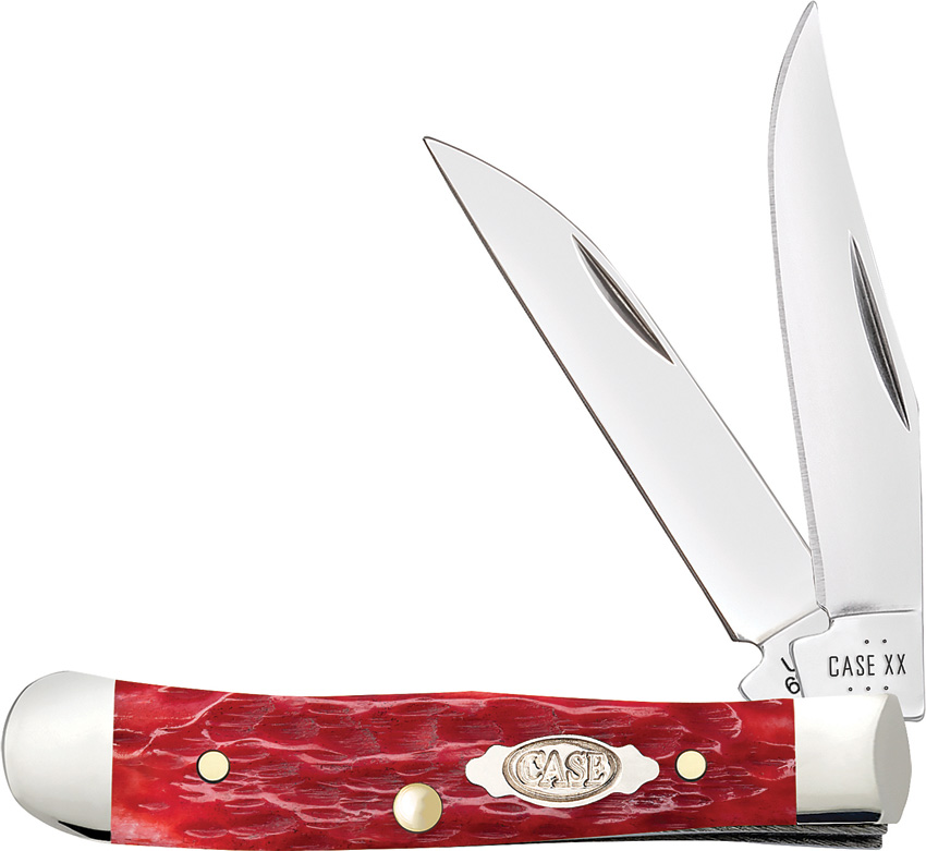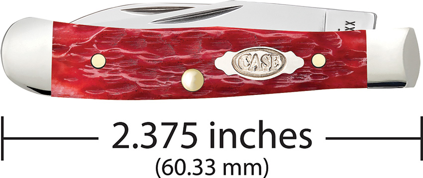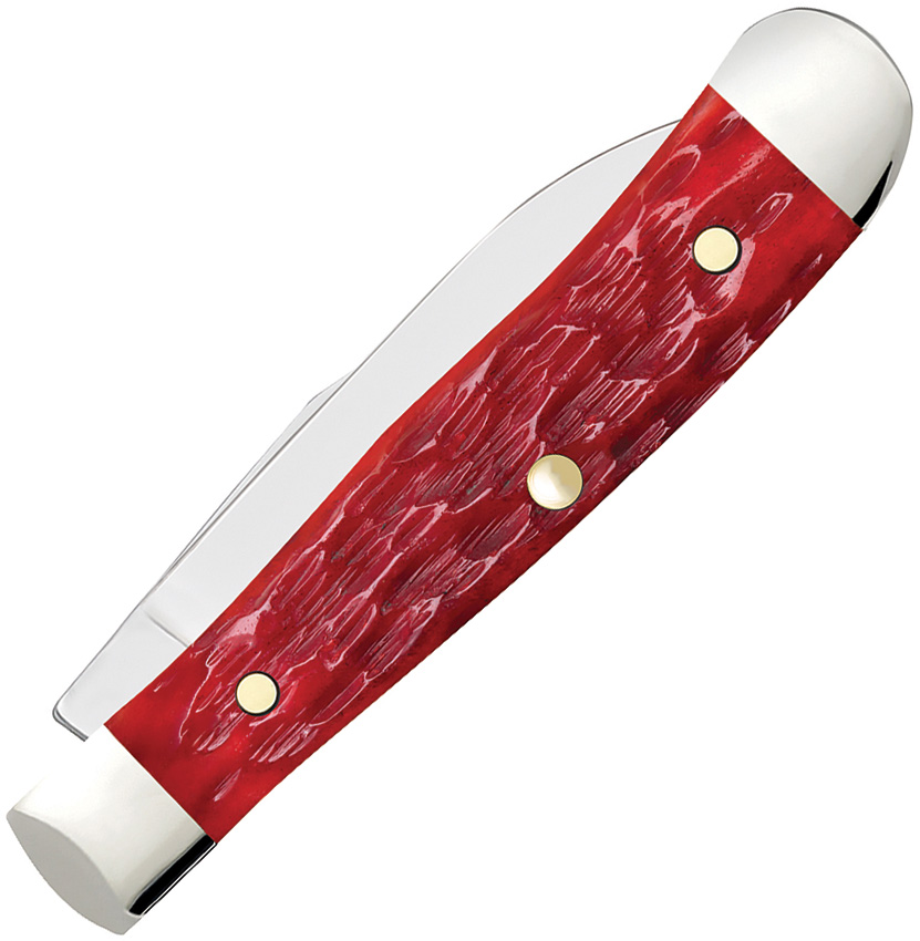 62154W CS pattern. 2.38″ (6.05cm) closed. Mirror finish carbon steel clip and Wharncliffe blades. Dark red peach seed jigged bone handle. Nickel silver bolster(s). Inlay shield. Boxed.