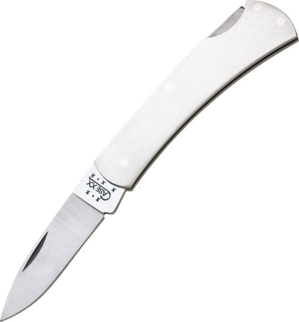 M1225L SS pattern. 3″ closed. Stainless drop point blade. Brushed handle. The ideal knife for the executive pocket, briefcase or purse. Boxed.