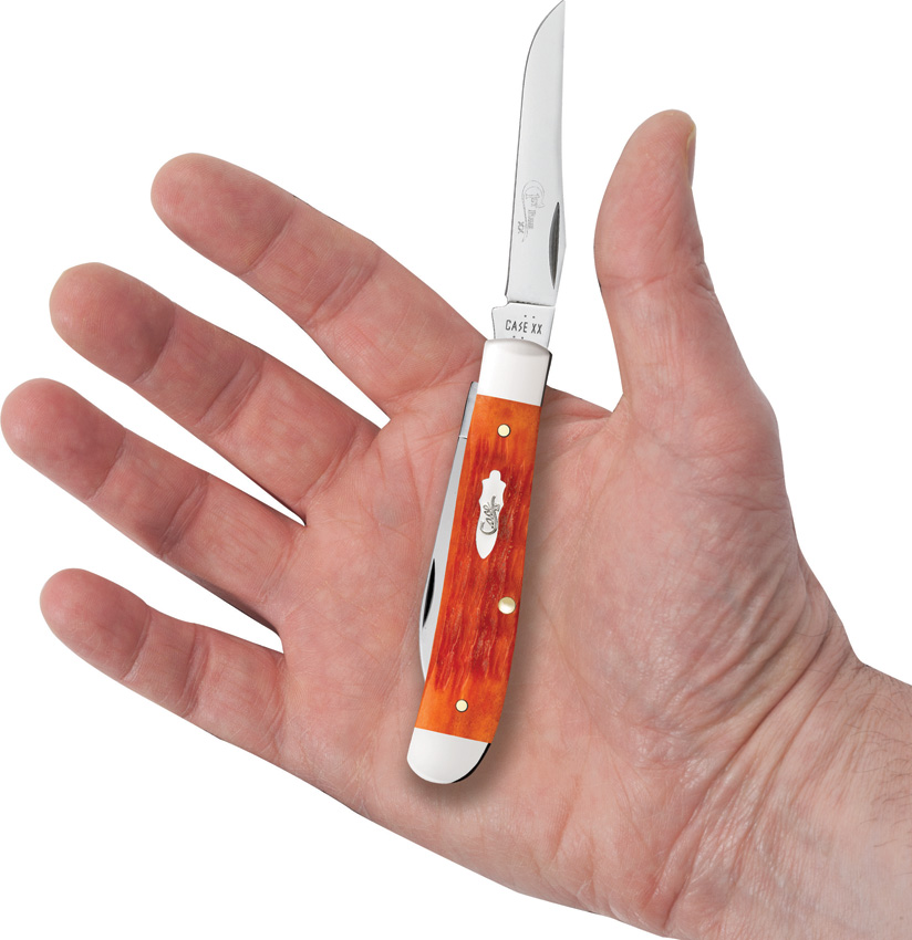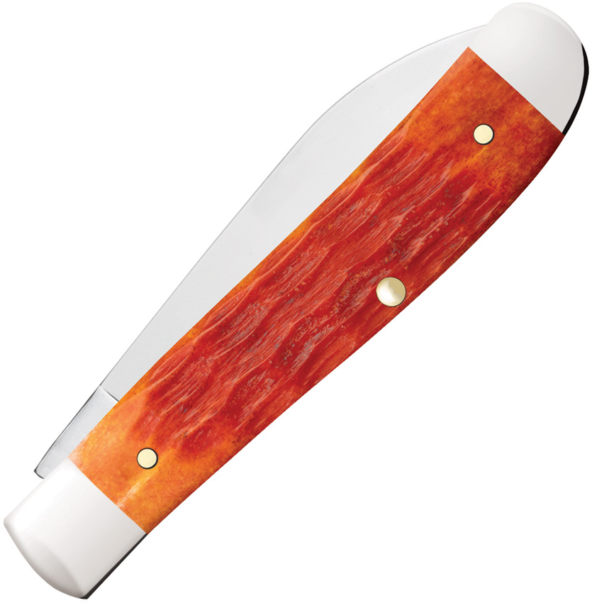 6207W SS pattern. 3.5″ (8.89cm) closed. Mirror finish stainless clip and spey blades. Tequila Sunrise Crandall jigged bone handle. Nickel silver bolster(s). Inlay shield. Boxed.