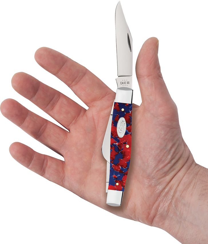 10375 SS pattern. 4.25″ (10.8cm) closed. Mirror finish stainless clip, spey, and sheepsfoot blades. Freedom Kirinite handle. Nickel silver bolster(s). Inlay shield. Boxed.