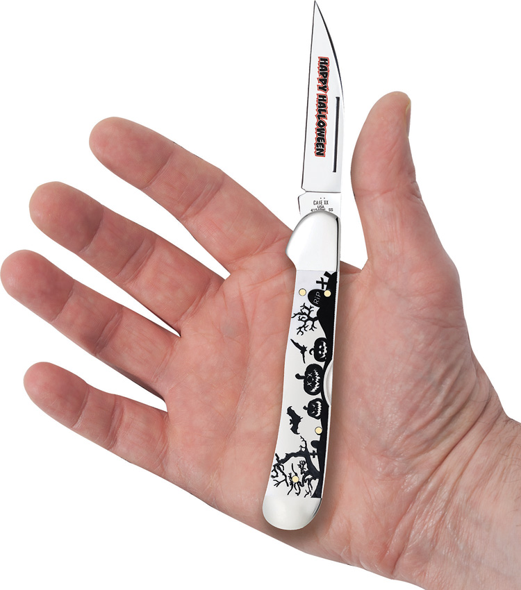 41549WL SS pattern. 4.25″ (10.8cm) closed. Mirror finish stainless locking Wharncliffe blade. White smooth synthetic handle. Nickel silver bolster(s). Blade etching. Halloween handle artwork. Gift tin.