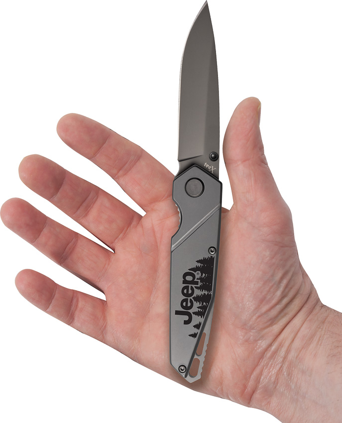 T0074.ST pattern. 4.5″ (11.43cm) closed. 3.25″ (8.26cm) gray titanium coated stainless blade. Gray titanium finish stainless handle. Thumb stud. Lanyard hole. Pocket clip. Boxed.
