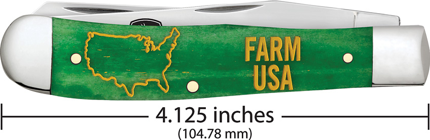 6254 SS pattern. 4.13″ (10.49cm) closed. Mirror finish stainless clip and spey blades. Bright green smooth bone handle. Nickel silver bolster(s). Blade etching. Boxed.