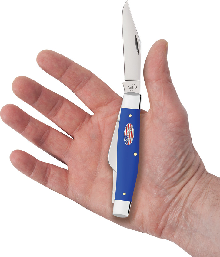 4375 SS pattern. 4.25″ (10.8cm) closed. Mirror finish stainless clip, sheepsfoot, and spey blades. Royal blue smooth synthetic handle. Nickel silver bolster(s). Inlay shield. Boxed.