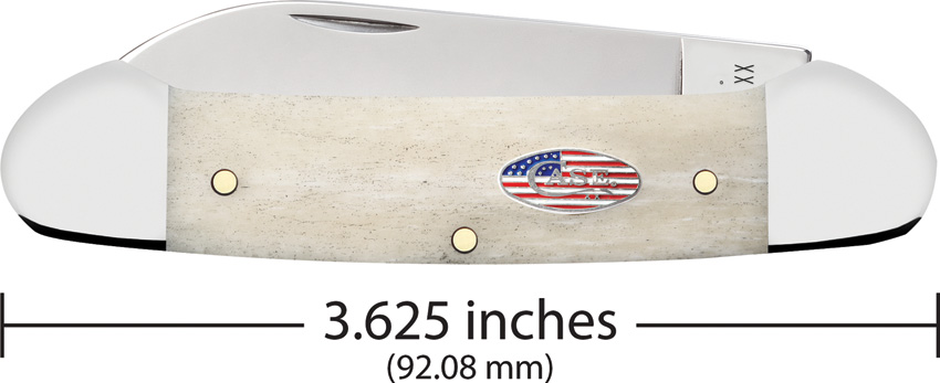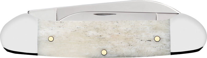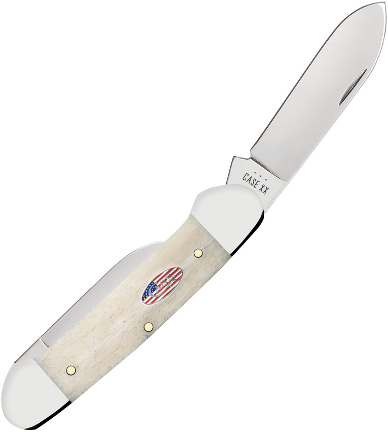 62131 CS pattern. 3.63″ (9.22cm) closed. Mirror finish carbon steel spear and pen blades. Natural smooth bone handle. Nickel silver bolster(s). Inlay shield. Boxed.