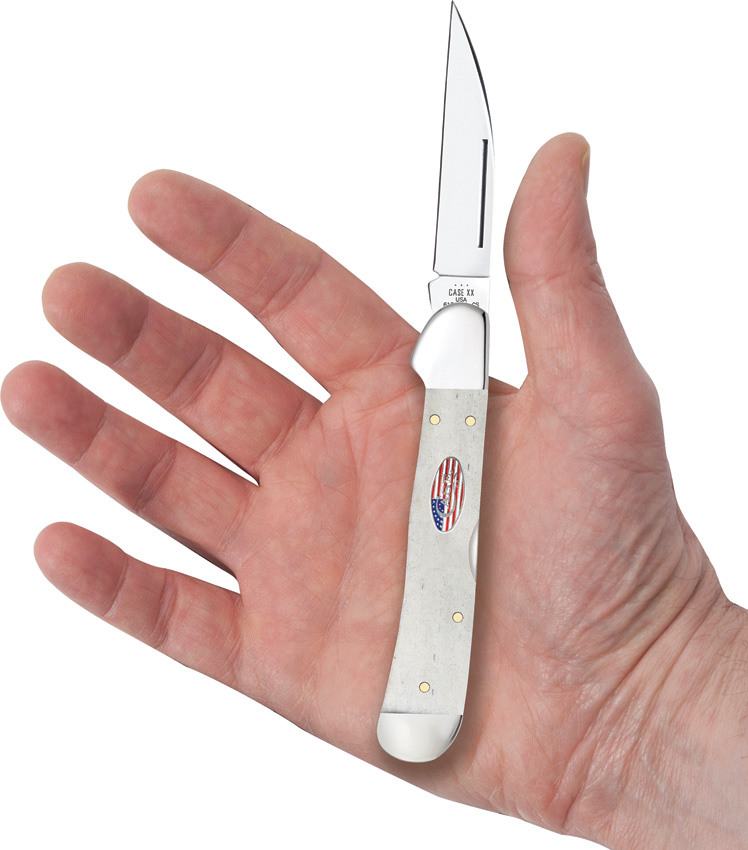 61549WL SS pattern. 4.25″ (10.8cm) closed. Mirror finish stainless locking Wharncliffe blade. Natural smooth bone handle. Nickel silver bolster(s). Inlay shield. Boxed.