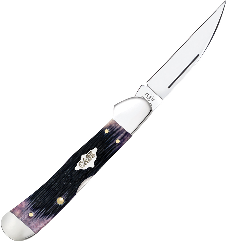 61549WL SS pattern. 4.25″ (10.8cm) closed. Mirror finish stainless locking Wharncliffe blade. Purple Barnboard jigged bone handle. Nickel silver bolster(s). Inlay shield. Boxed.