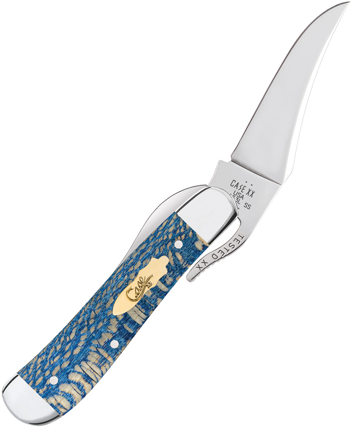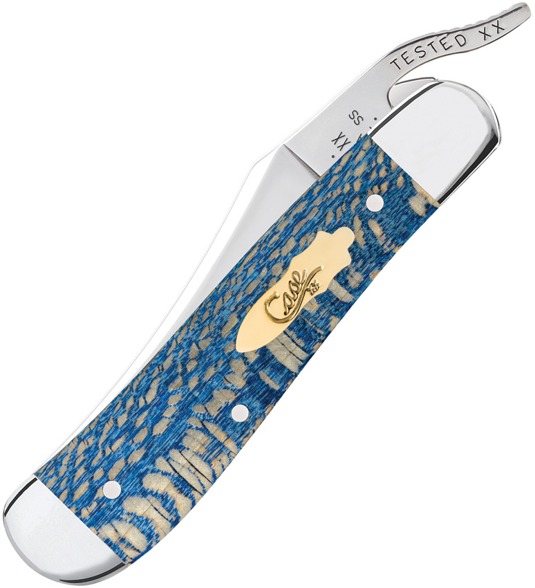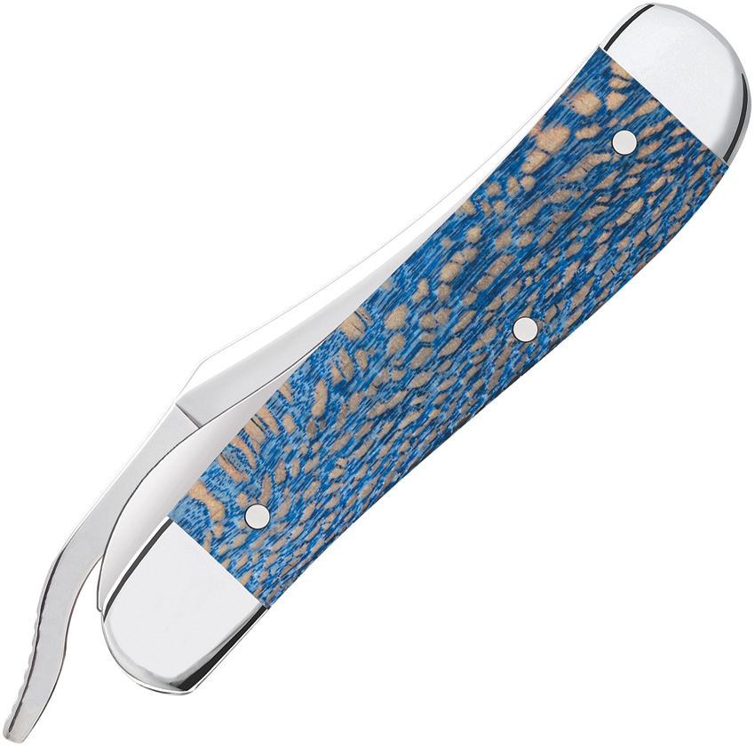 71953L SS pattern. 4.13″ (10.49cm) closed. Mirror finish stainless one-hand opening clip blade. Blue Sycamore wood handle. Nickel silver bolster(s). Extended tang. Inlay shield. Boxed.