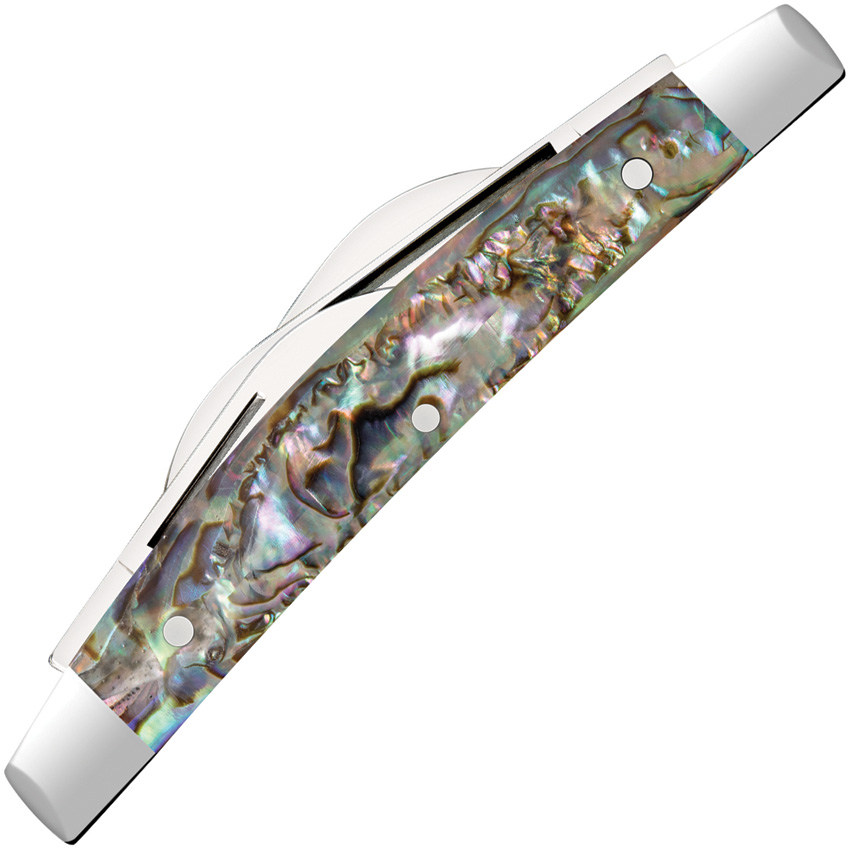 8468 SS pattern. 3.13″ (7.95cm) closed. Mirror finish stainless sheepsfoot, spear, pen, and coping blades. Abalone handle. Nickel silver bolster(s). Gift boxed.