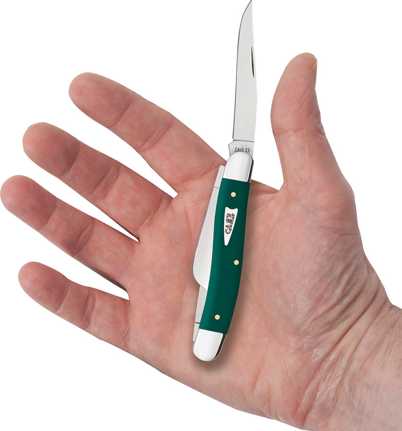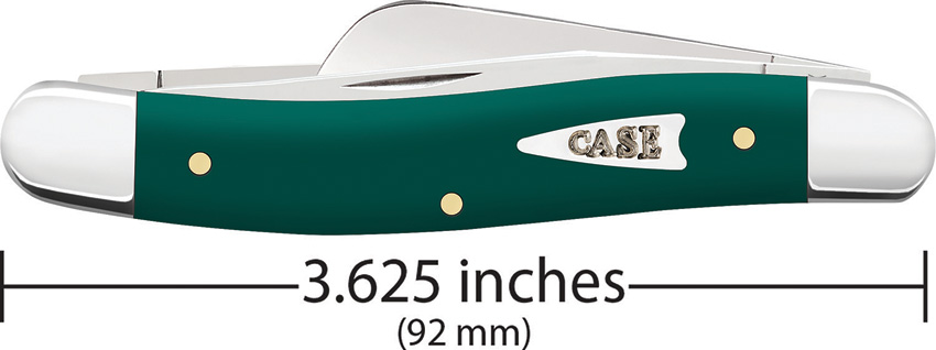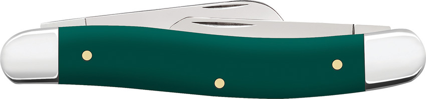 4318 SS pattern. 3.63″ (9.22cm) closed. Mirror finish stainless clip, sheepsfoot, and spey blades. Spruce green smooth synthetic handle. Nickel silver bolster(s). Inlay shield. Boxed.