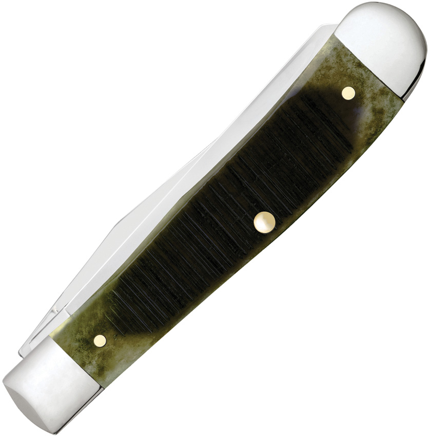 6254 SS pattern. 4.13″ (10.49cm) closed. Mirror finish stainless clip and spey blades. Olive green sawcut bone handle. Nickel silver bolster(s). Inlay shield. Boxed.