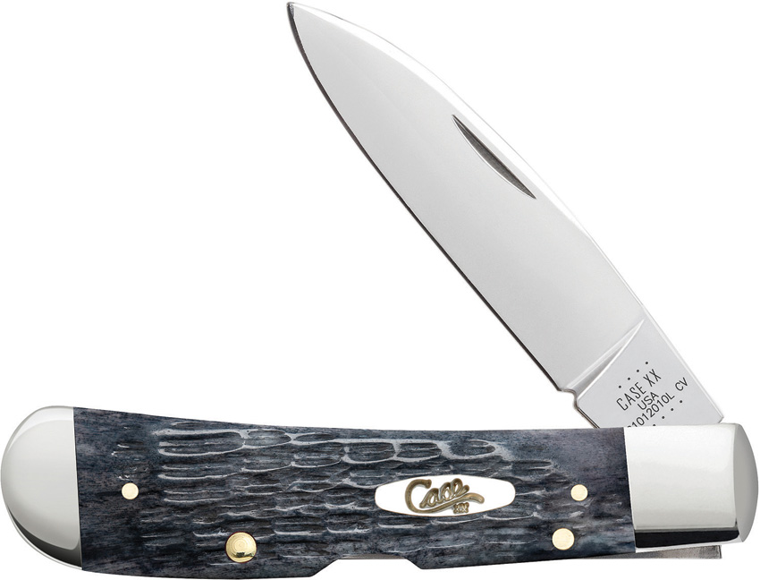 TB612010L CV pattern. 4.13″ (10.49cm) closed. Mirror finish Chrome Vanadium carbon steel locking spear blade. Pocket Worn gray Crandall jigged bone handle. Nickel silver bolster(s). Inlay shield. Boxed.