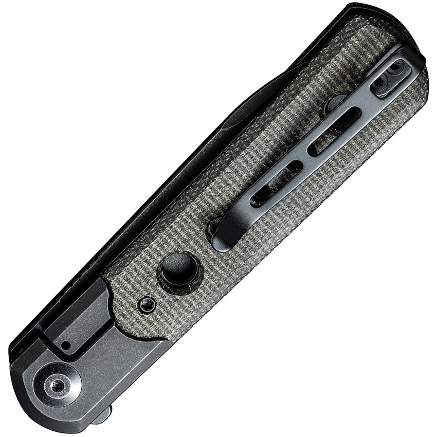 4.5″ (11.43cm) closed. 3.5″ (8.89cm) black stonewash finish Nitro V steel blade. Green canvas micarta handle. Titanium bolster(s). Extended tang. Pocket clip. Boxed.