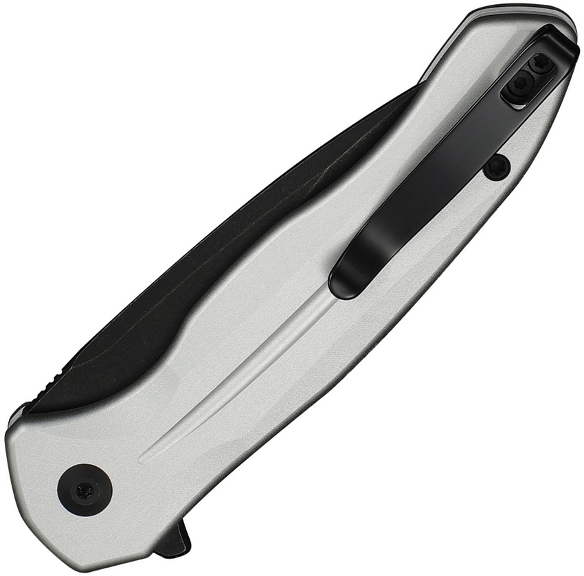 4.25″ (10.8cm) closed. 3.25″ (8.26cm) black stonewash finish 14C28N Sandvik stainless drop point blade. Silver aluminum handle. Extended tang. Pocket clip. Black nylon zippered storage case. Boxed.