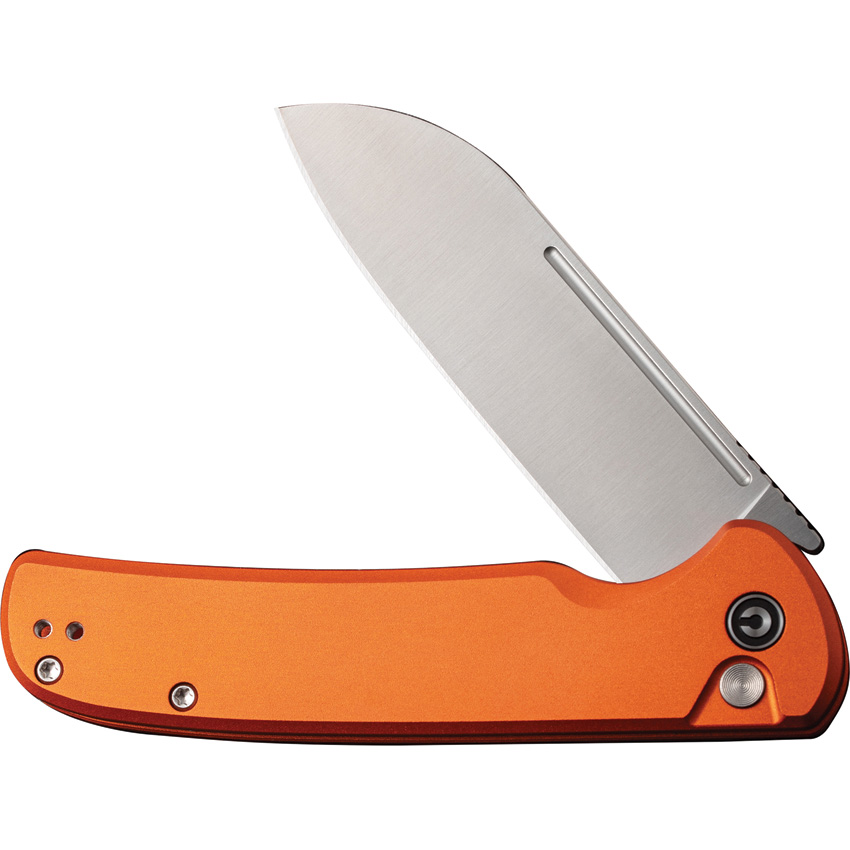 4.5″ (11.43cm) closed. 3.5″ (8.89cm) satin finish 14C28N Sandvik stainless blade. Orange aluminum handle. Extended tang. Pocket clip. Black nylon zippered storage case. Boxed. Sales Restriction: No Amazon.com Sales.