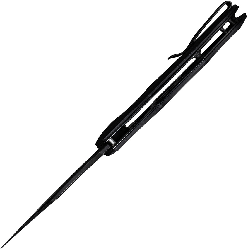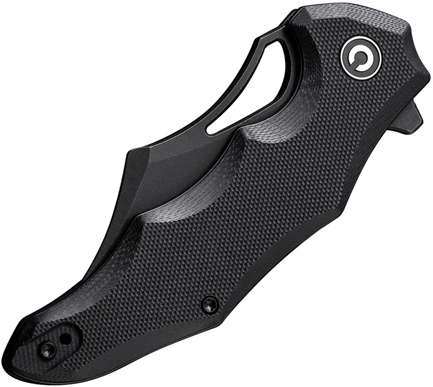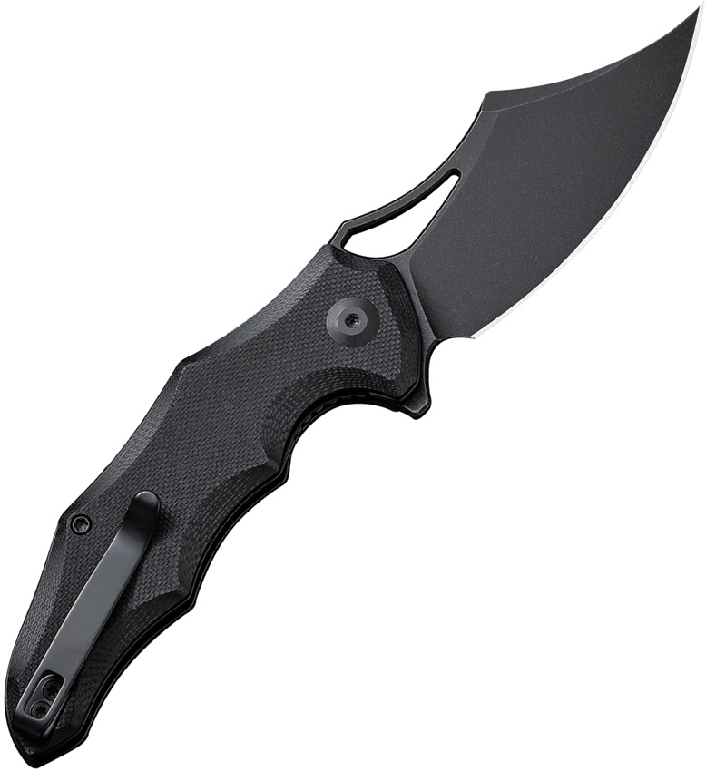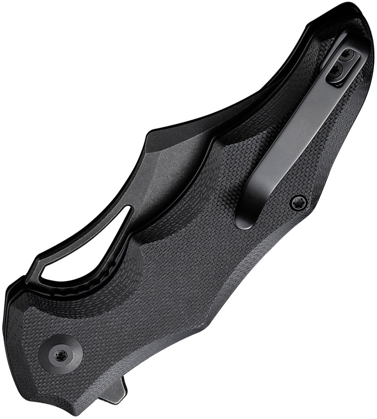 4.5″ (11.43cm) closed. 3.13″ (7.95cm) black stonewash finish 14C28N Sandvik stainless clip point blade. Black sculpted G10 handle. Extended tang. Thumb pull. Pocket clip. Black nylon zippered storage case. Boxed.
