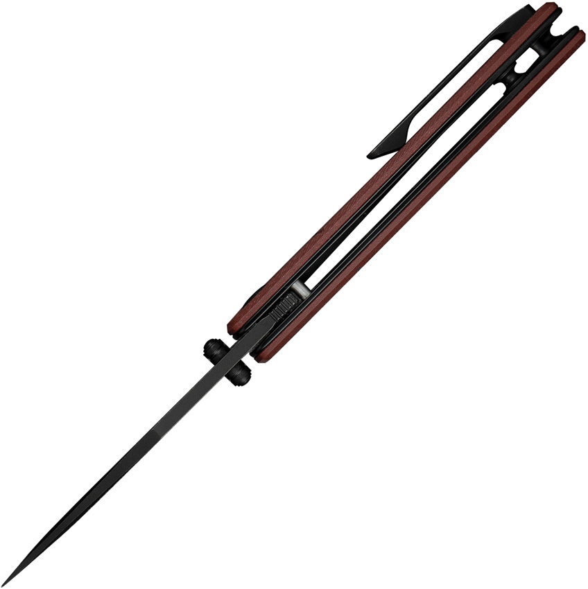 4″ (10.16cm) closed. 3″ (7.62cm) black stonewash finish Nitro V steel clip point blade. Burgundy G10 handle. Thumb stud. Extended tang. Pocket clip. Black Kydex belt sheath. Boxed.