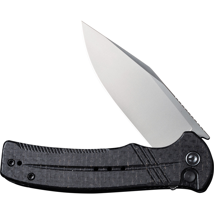4.5″ (11.43cm) closed. 3.5″ (8.89cm) bead blast finish 14C28N Sandvik stainless blade. Black micarta handle. Extended tang. Pocket clip. Black nylon zippered storage case. Boxed.