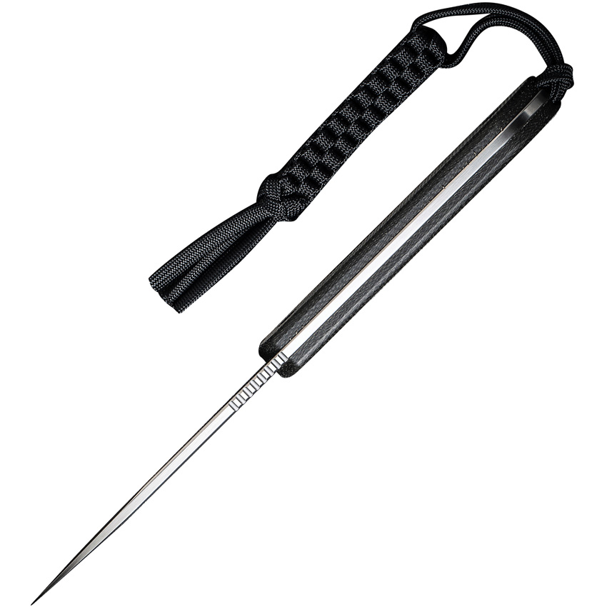 8.5″ (21.59cm) overall. 4″ (10.16cm) satin finish D2 tool steel blade. Green micarta handle. Lanyard hole. Braided paracord lanyard. Sheath features T-Clip designed by Bob Terzuola. Black Kydex belt sheath. Boxed.