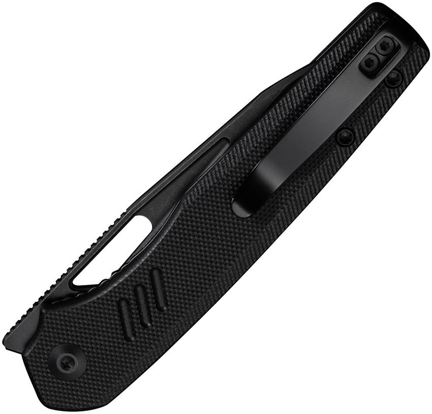 4.25″ (10.8cm) closed. 3.25″ (8.26cm) black stonewash finish 14C28N Sandvik stainless Wharncliffe blade. Black G10 handle. Thumb pull. Pocket clip. Boxed.