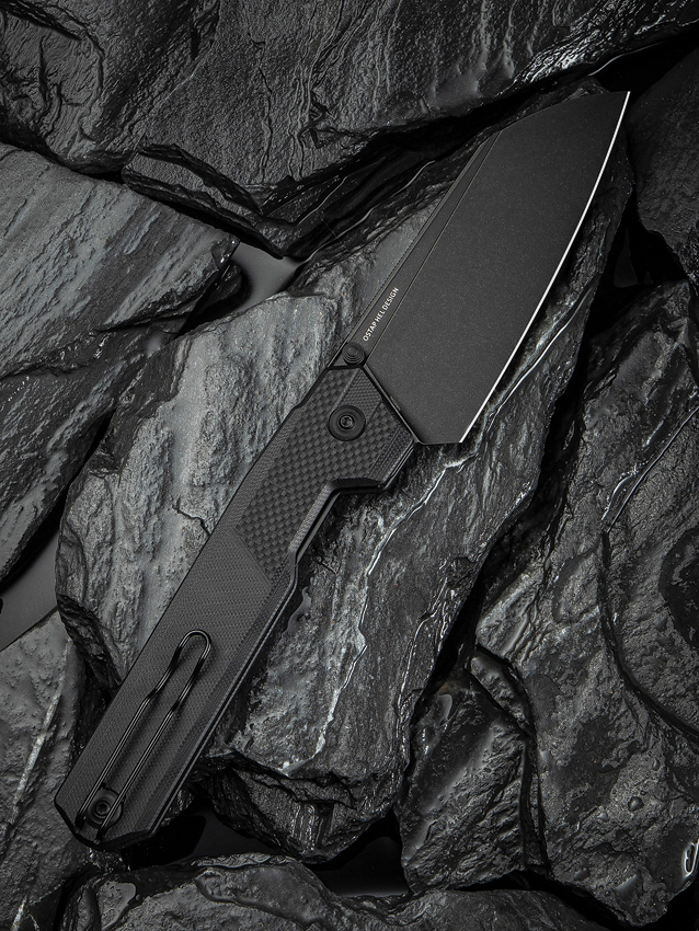 5.75″ (14.61cm) closed. 4.13″ (10.49cm) black stonewash finish 14C28N Sandvik stainless blade. Black G10 handle. Thumb stud. Pocket clip. Reverse tanto blade. Black nylon zippered storage case. Boxed.