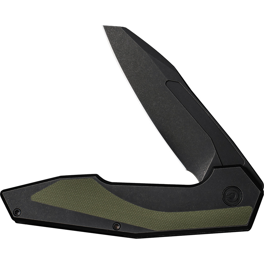 4.75″ (12.07cm) closed. 3.75″ (9.53cm) black stonewash finish 14C28N Sandvik stainless blade. Black stonewash finish stainless handle with OD green G10 inlay. Extended tang. Pocket clip. Boxed.