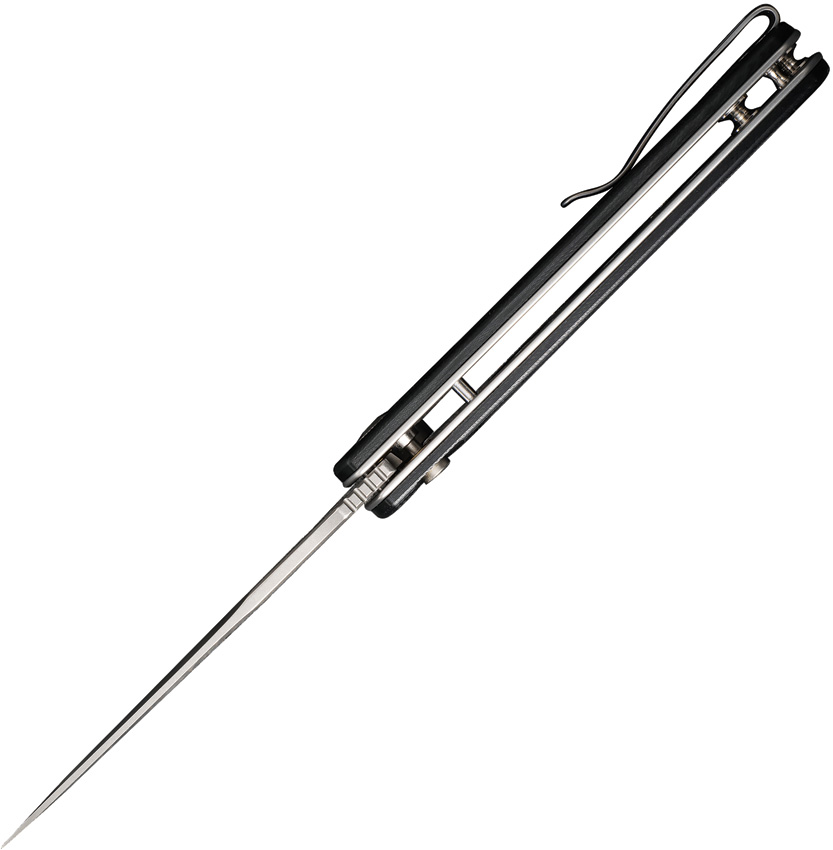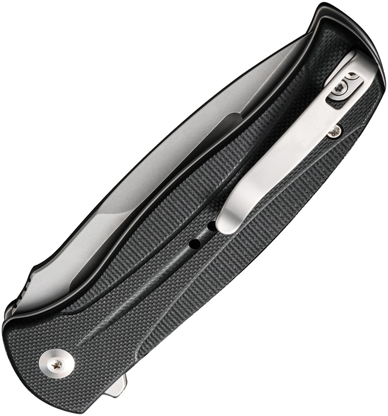 4.5″ (11.43cm) closed. 3.5″ (8.89cm) stonewash finish 14C28N Sandvik stainless spear point blade. Black G10 handle. Extended tang. Pocket clip. Black nylon zippered storage case. Boxed.