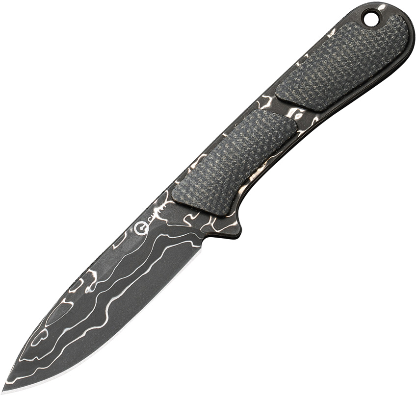 5″ (12.7cm) overall. 2.25″ (5.72cm) black finish Damascus steel blade. Green canvas micarta handle. Full tang. Lanyard hole. Ball chain lanyard. Black Kydex neck sheath. Boxed. Sales Restriction: No Amazon.com Sales.