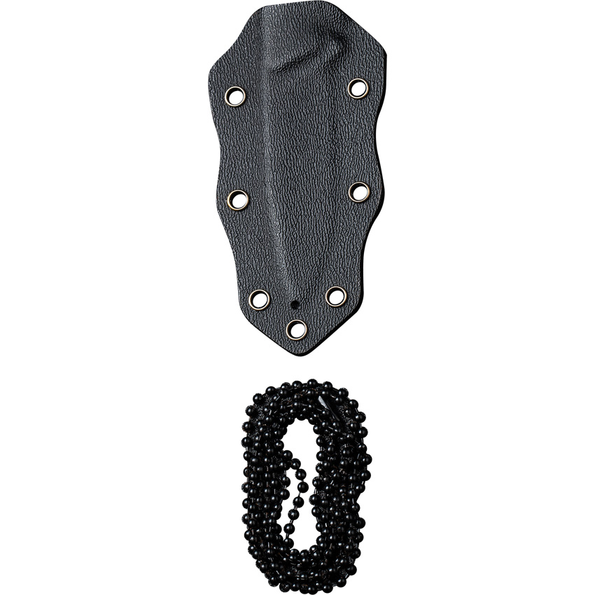 5″ (12.7cm) overall. 2.25″ (5.72cm) black stonewash finish Nitro V steel blade. Black G10 handle. Full tang. Lanyard hole. Ball chain lanyard. Black Kydex neck sheath. Boxed.