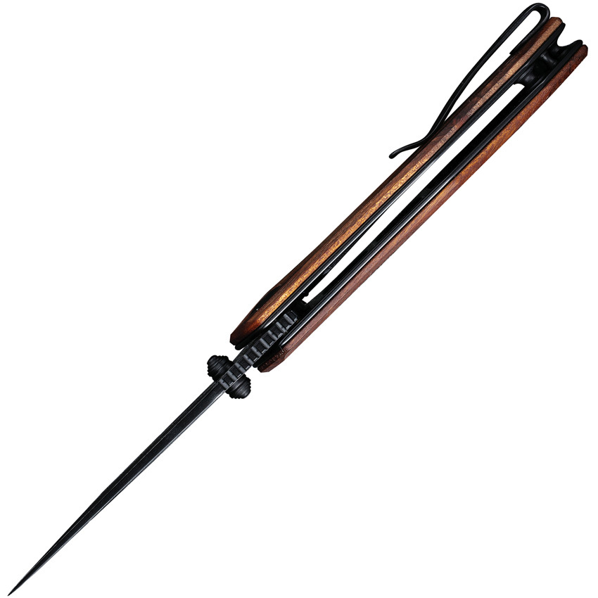 4.13″ (10.49cm) closed. 3″ (7.62cm) Damascus steel blade. Extended tang. Thumb stud. Pocket clip. Cuibourtia wood handle. Black nylon zippered storage case. Boxed. Sales Restriction: No Amazon.com Sales.