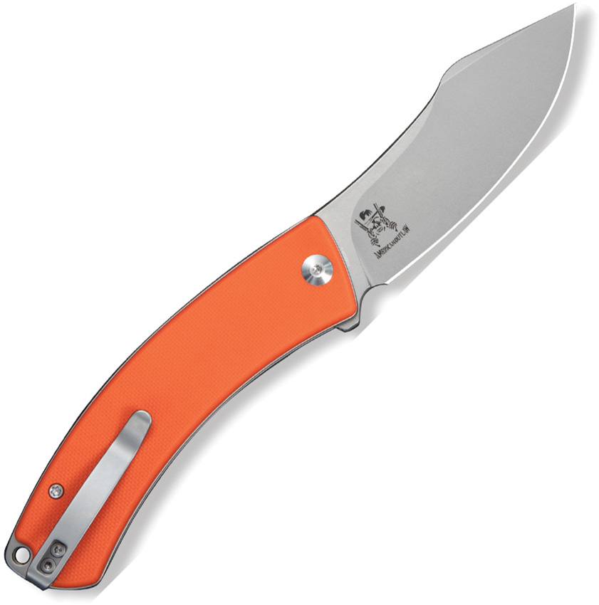 4.63″ (11.76cm) closed. 3.5″ (8.89cm) stonewash finish 14C28N Sandvik stainless blade. Orange G10 handle. Extended tang. Lanyard hole. Pocket clip. Nesmuk style blade. Black nylon zippered storage case. Boxed.