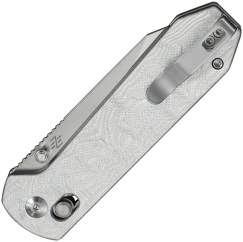 4.25″ (10.8cm) closed. 3.38″ (8.59cm) satin finish 14C28N Sandvik stainless reverse tanto blade. Aluminum foil G10 handle. Thumb stud. Pocket clip. Boxed.