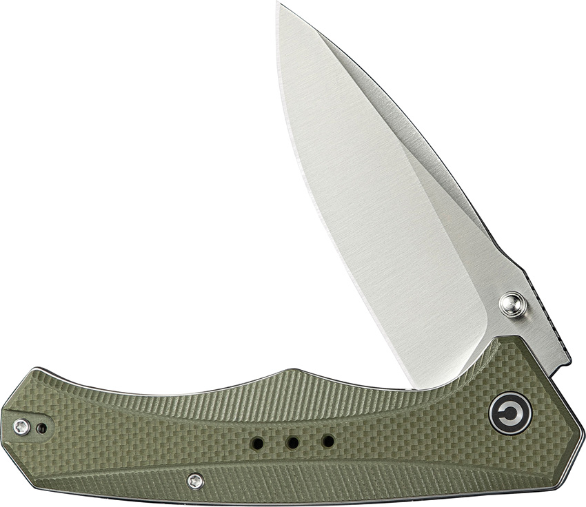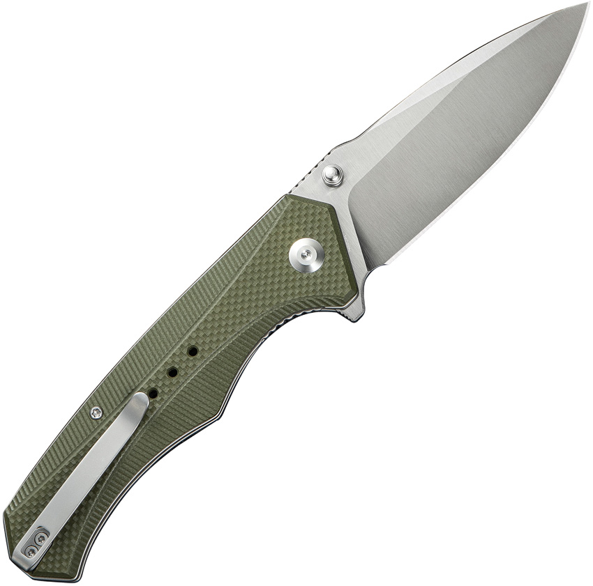 5.25″ (13.34cm) closed. 3.75″ (9.53cm) satin finish 14C28N Sandvik stainless drop point blade. Green G10 handle. Extended tang. Thumb stud. Pocket clip. Black nylon zippered storage case. Boxed.