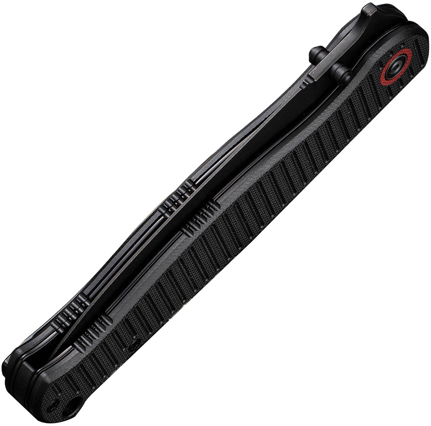 5.25″ (13.34cm) closed. 4″ (10.16cm) black stonewash finish Nitro V steel blade. Black G10 handle. Thumb stud. Extended tang. Lanyard hole. Pocket clip. Black nylon zippered storage case. Boxed.