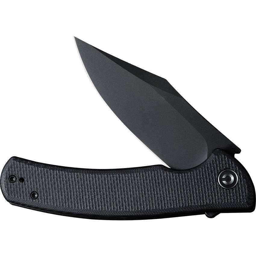 4.75″ (12.07cm) closed. 3.75″ (9.53cm) black stonewash finish 14C28N Sandvik stainless clip point blade. Black textured G10 handle with Black stonewash stainless back handle. Extended tang. Pocket clip. Boxed.