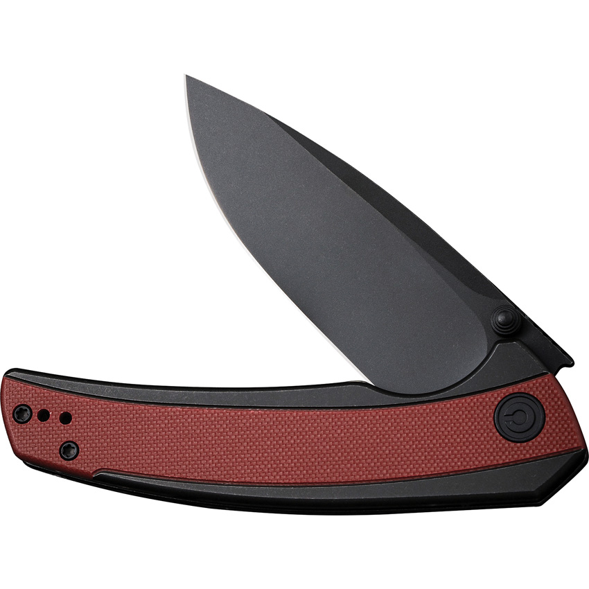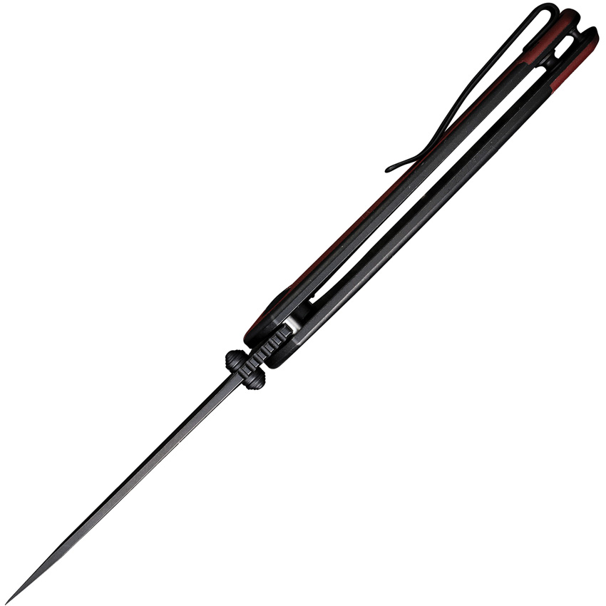 4.5″ (11.43cm) closed. 3.5″ (8.89cm) black stonewash finish Nitro V steel drop point blade. Black stonewash finish stainless handle with Burgundy G10 inlay. Extended tang. Thumb stud. Pocket clip. Black nylon zippered storage case. Boxed.