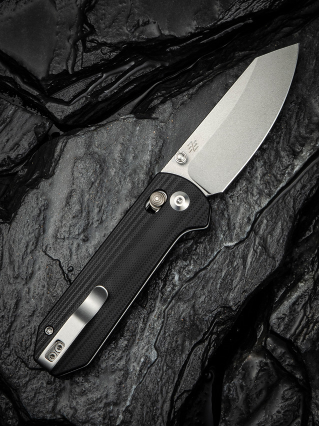 3.75″ (9.53cm) closed. 2.88″ (7.32cm) stonewash finish 14C28N Sandvik stainless blade. Black G10 handle. Thumb stud. Pocket clip. Black nylon zippered storage case. Boxed.