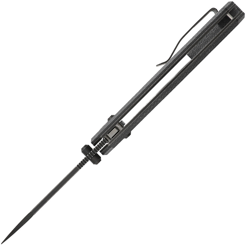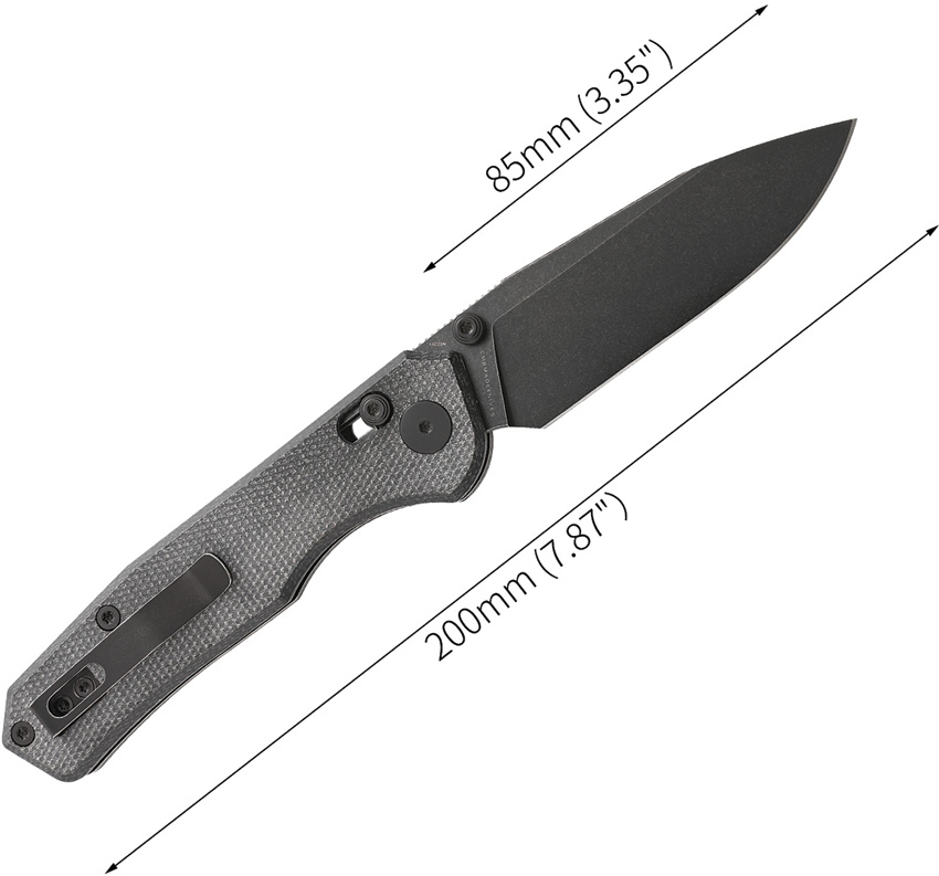 4.5″ (11.43cm) closed. 3.38″ (8.59cm) black stonewash finish 14C28N Sandvik stainless blade. Black canvas micarta handle. Thumb stud. Pocket clip. Boxed.