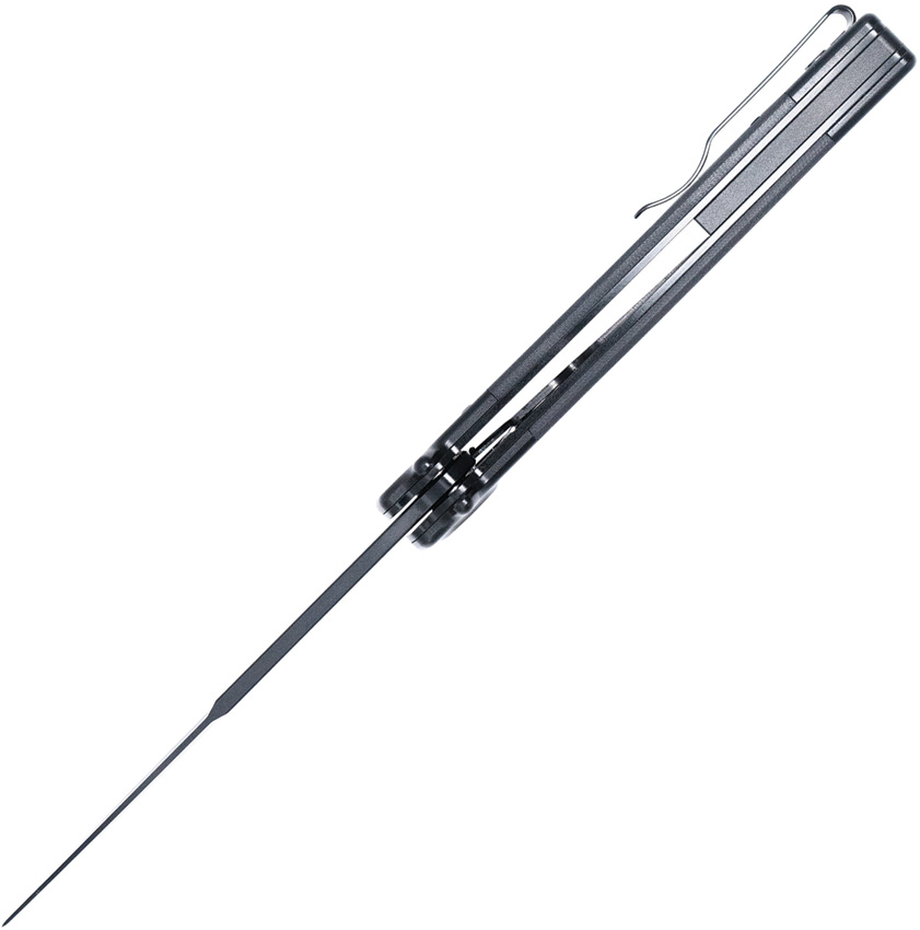 5″ (12.7cm) closed. 4″ (10.16cm) black finish VG-10 stainless blade. Black G10 handle. Stainless bolster(s). Extended tang. Lanyard hole. Pocket clip. Boxed.