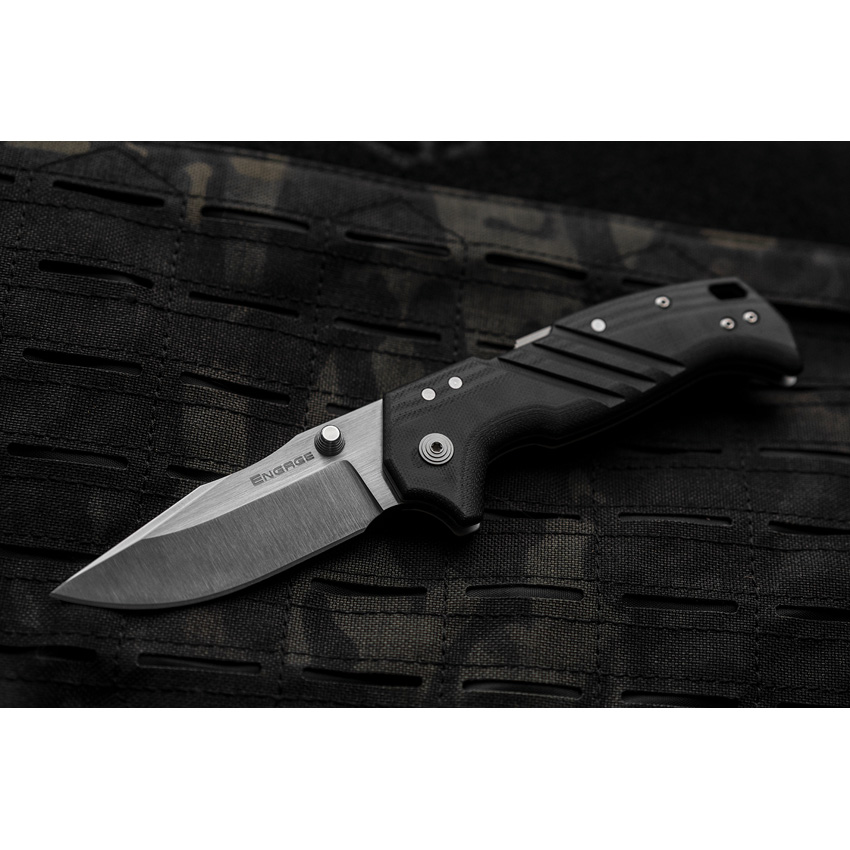 4.63″ (11.76cm) closed. 3.5″ (8.89cm) satin finish S35VN stainless clip point blade. Black G10 handle. Thumb stud. Lanyard hole. Pocket clip. Extended tang. Boxed.
