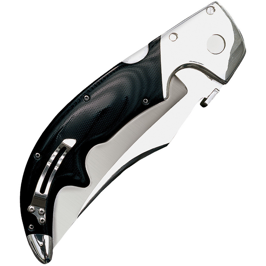 Cold Steel. Large Espada. This discontinued Cold Steel folder is from Lynn Thompson’s Personal Collection and comes with a Certificate of Authenticity signed by Lynn Thompson and Serial numbered. Cold Steel item number CS-62NCL.nnClosed: 7″; Blade: 5.5″ l Carpenter CTS-XHP Alloy l Standard Edge l Satin Finish; Handle: Black l G10; Other Info: Pocket Clip. Upswept clip point blade with thumb lug. Finger choil. Polished aluminum bolsters. Features Tri-Ad lock. Boxed.