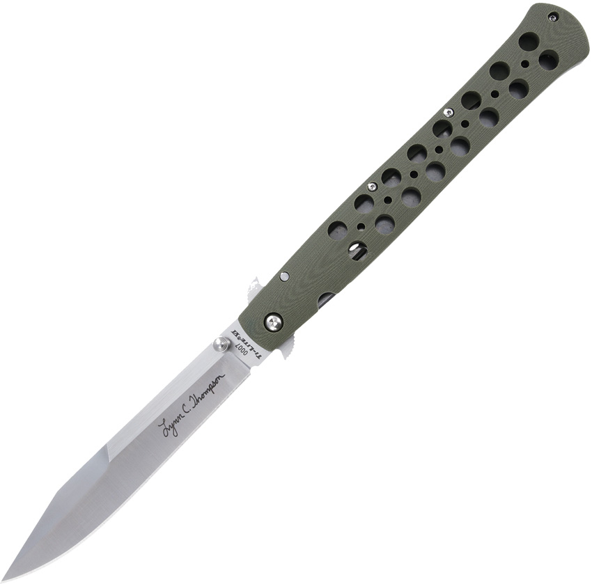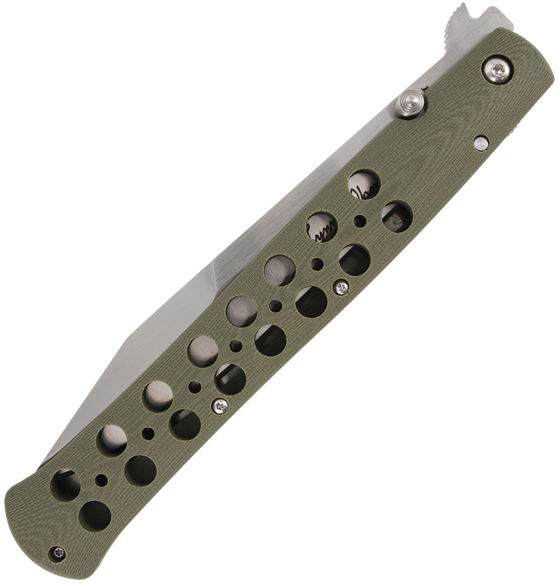 7″ (17.78cm) closed. 6″ (15.24cm) satin finish S35VN stainless blade. OD green G10 handle. Thumb stud. Extended tang. Pocket clip. Boxed.