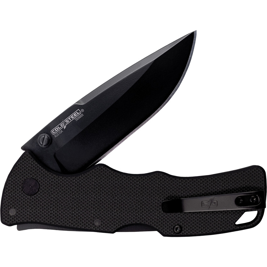 4.25″ (10.8cm) closed. 3″ (7.62cm) black finish AUS-10A stainless spear point blade. Black G10 handle. Thumb stud. Lanyard hole. Pocket clip. Boxed.