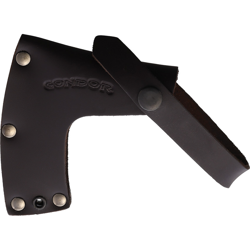 19″ overall. 6″ natural finish 1060HC steel axe head with 3.5″ cutting edge. Burnt American Hickory handle. Lanyard hole. Brown leather belt sheath. Bulk packed.